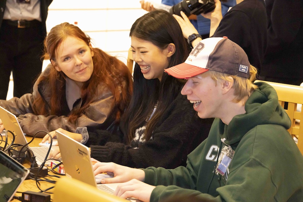 多様な食材から選べるケータリングでランチを楽しんだあとは、デジタル空間での「もうひとつの海づくり」。サンドボックス型ゲーム「Minecraft」を使い、逗子海岸を舞台にゴミの分別を学ぶ子ども向けのデジタル教材をチームごとに制作しました。学生たちは1人1台のパソコンでアイデアを出し合い、ガラス瓶やプラスチックなどのオブジェクトを可燃・不燃・リサイクルのいずれのゴミ箱に分別してもらうための方法を考えました。学生たちは創造性豊かなゲームなどを創作。スプレー缶を可燃ゴミにするとエラーが出ることを利用して、その理由を考えさせる工夫を施しました。発表会では、それぞれのチームが作り上げた海岸の世界を披露し合い、表現力やチームワークを称え合いました。