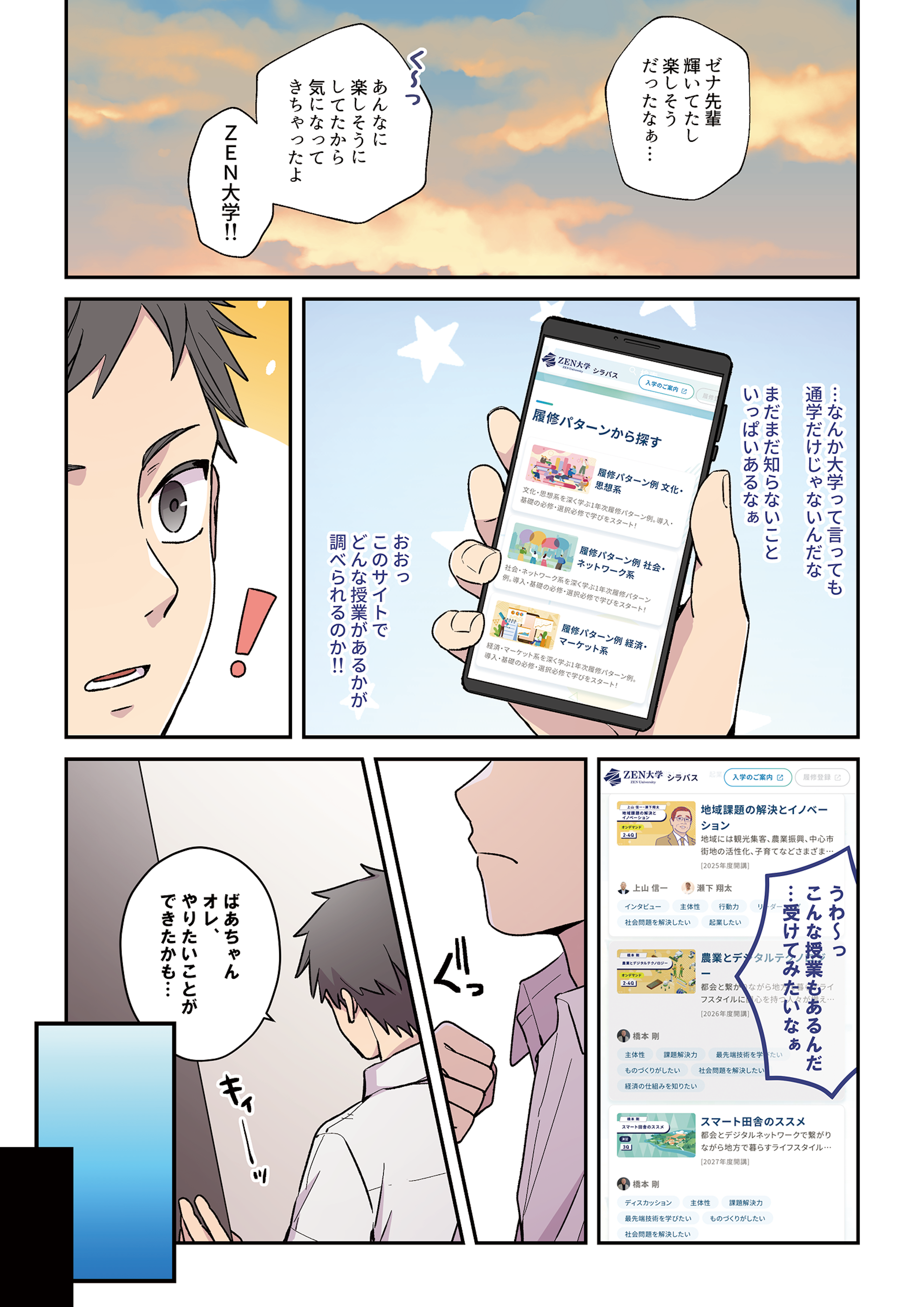 進学先を選び、受験に向けて日々の学習に取り組んでいる皆さんに向けて、ZEN大学の特長をマンガでお伝えします。ぜひご覧ください。