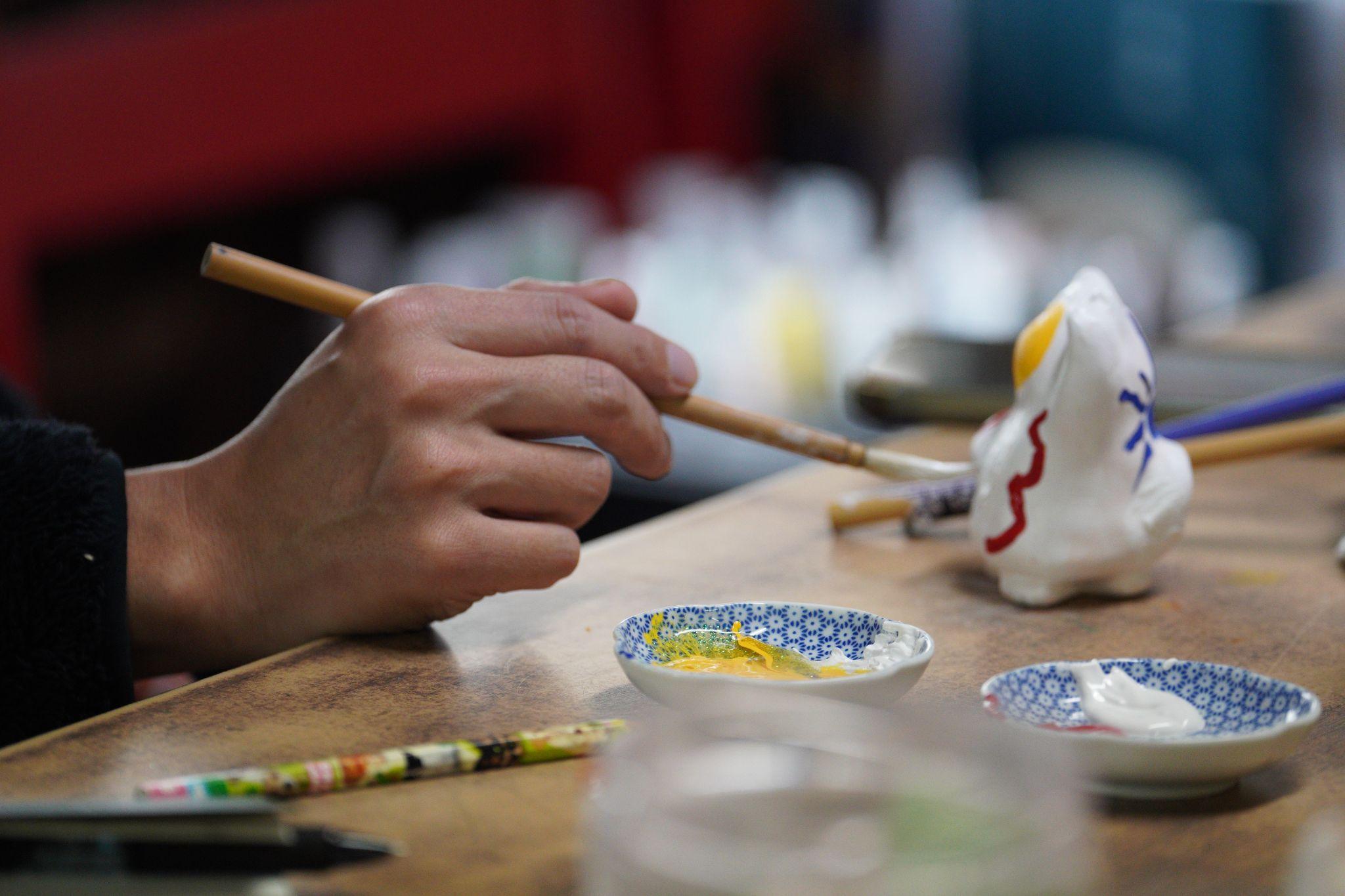 役場で波佐見町の現状や取り組みについて説明を受け、波佐見焼の製造工場の見学、狩猟ワークショップや解体加工体験などを通してさまざまなことを学びました。絵付けや楽焼(※1)の体験もしました。また、地域の方を招いたBBQや郷土料理勉強会、焼きものの販売を中心としたイベントの手伝いを通じて、地域の方々との交流も深まりました。
