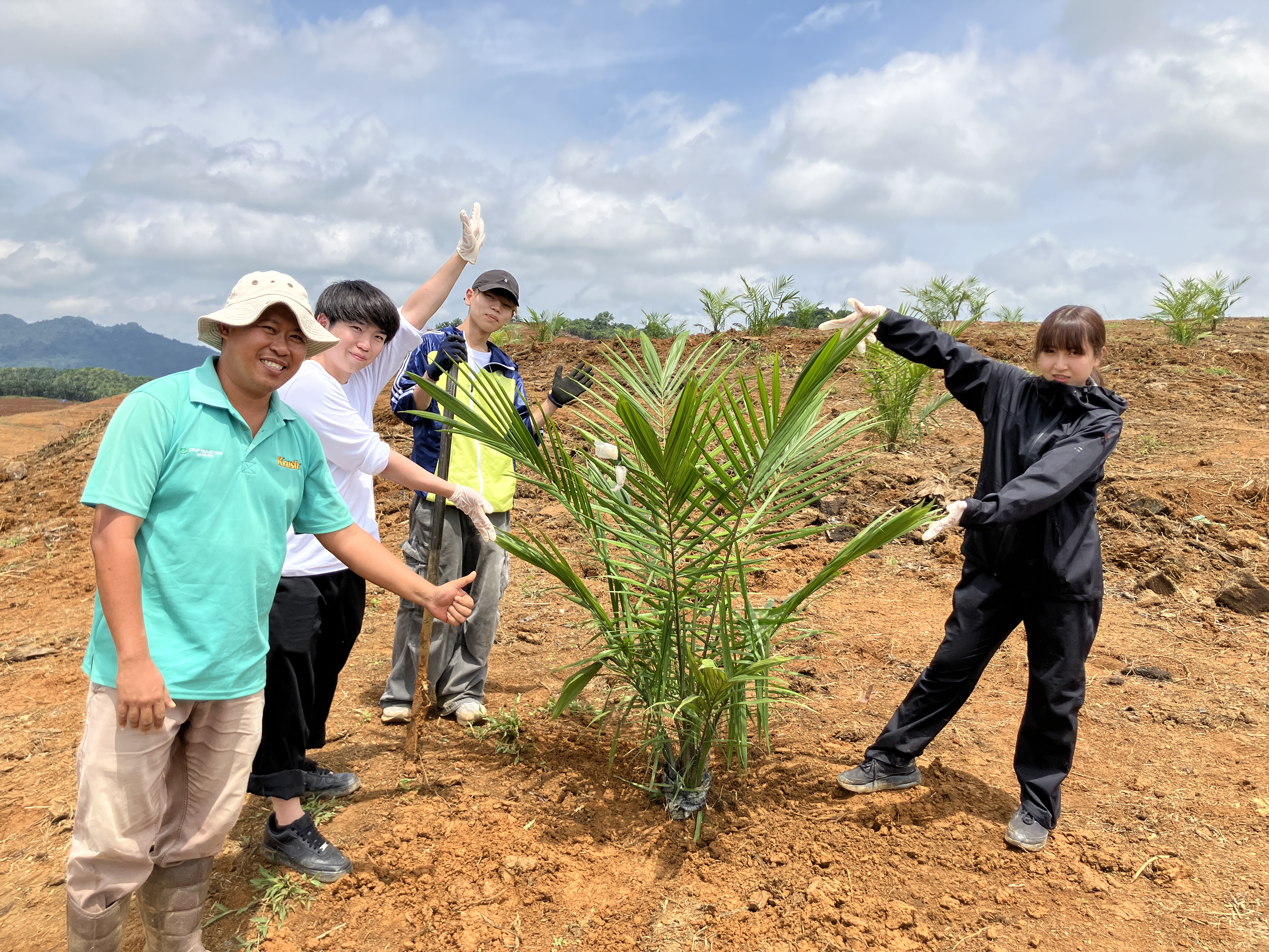 今回のマレーシアフィールドワーク研修で得た学びは、物事を一面的に捉えるのではなく、多面的に理解することの重要性です。植林活動に参加し、現地で植林に携わる人々の姿を間近に見る中で、環境保全の意義や作業の大変さを知ることができました。一方、アブラヤシのプランテーションを見学した際には、環境問題の「悪」とされがちなアブラヤシが、実は私たちの暮らしを支える重要な資源であり、多くの人々の生活にも深く関わっていることを理解しました。このように対照的な現場に触れたことで、環境問題を含むあらゆる課題は、一方的な価値観だけで判断するのではなく、多様な立場にたち、多面的に考えていく必要性があると強く感じました。