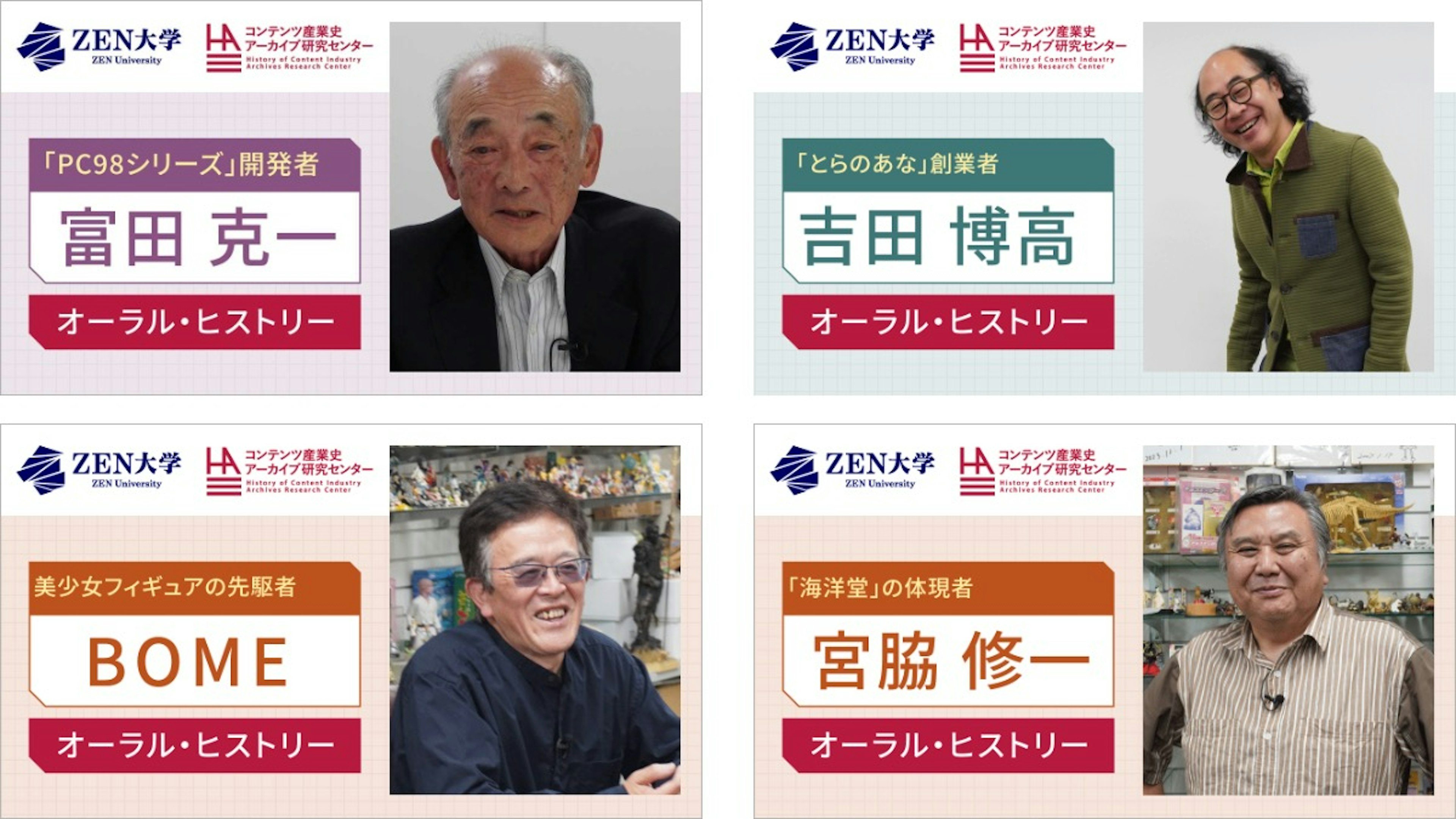 ZEN大学コンテンツ産業史アーカイブ研究センター(HARC)は、日本のコンテンツ産業に関わる各分野で活躍した、業界の第一人者の証言を映像と文字起こし資料で記録した「オーラル・ヒストリー コレクション」の第9弾を公開しました。